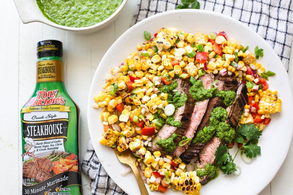 Grilled Flank Steak and Corn Salad with Chimichurri Sauce