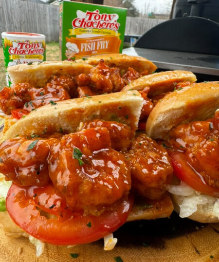 Get RecipeTry these Mini Honey Buffalo Shrimp Po’ Boys by @SouthernVibin – Crispy shrimp tossed in a sweet and spicy honey buffalo sauce, served on a soft roll with fresh toppings for the perfect bite-sized indulgence.